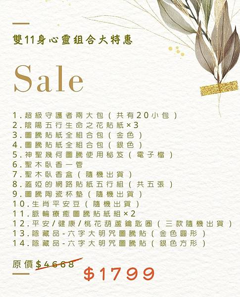 ㊙️特製身心靈組合大特惠,多達14樣商品,原價$4688,現在只要$1799