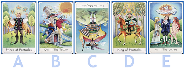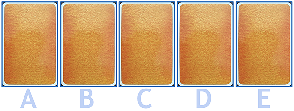 從以下五張牌 A、B、C、D、E,請依照直覺選出其中的一張。